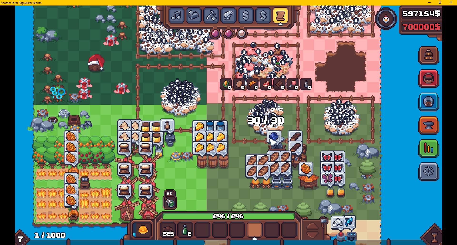 ・小麦自体の期待値は高くないが結局パンが700$なので、最小限に育てて可能な限り挽いて焼いた方がよい。